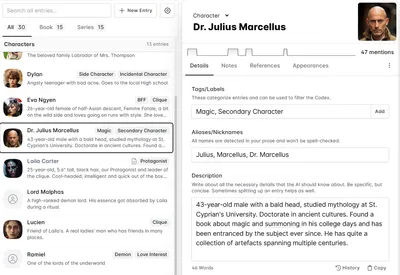 What sets the Tinker interface apart from other chat interfaces is its tight integration with the Codex and your novel. The AI effortlessly pulls information from these sources, eliminating the need for constant reminders about characters or plot details. Plus, the Appearance Tab within the Codex allows you to keep track of your conversations, making it easy to revisit specific entries.